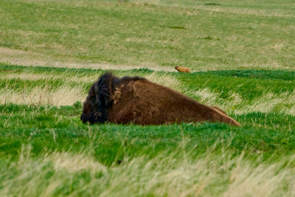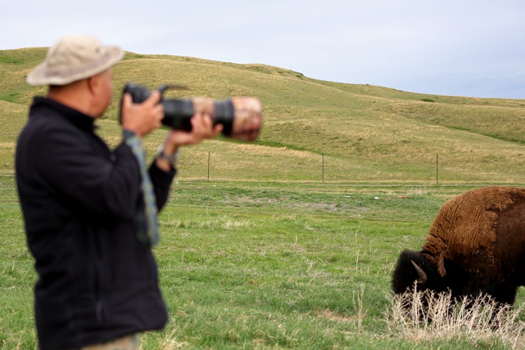 Иә, Америка құрлығында  тіршілік ететін, байырғы үндістердің қарааяқ, қан тайпаларының негізгі азық көзі болған кәдімгі бизондардың Сарыарқа төсіне жерсіндіріліп жатқан  шағын табыны. Қазір Ақдым тауының баурайында жайылып жүр. Бар ойымыз  осы – Қазақстан үшін таңсық жануарларды мейлінше жақыннан көру, бақылау және суретке түсіру, National Geographic Qazaqstan қорын жаңа фотолармен толықтыру. Алайда жолға кететін уақытты дұрыс есептемеген екенбіз, кешқұрым табиғат аясында суретке түсіреміз деген ойымыз орындалмайтынын «Молодежный» кентіне жеткенде білдік. Бізді қарсы алған «Бұйратау» МҰТП бас директорының ғылыми сала бойынша орынбасары Қайрат Бұхарбаев пен филиал директоры Айтман  Омарбеков ол жаққа қас қарайғанда бір-ақ жететінімізді айтты.  Ендігі қалған 80 шақырым жолдың тең жартысы  әр-әр жерде ғана асфальт жұрнағы қалған тас жол болса, қалған жартысы кәдімгі қара жол дейді. Жолнұсқаушы белгілерді байқамай қалсақ, иен далада адасып кетуіміз де мүмкін екен. Сондықтан, кордондағы қызметкерлерге парк аумағына таяу тұстан күтіп алуды табыстап қойыпты.