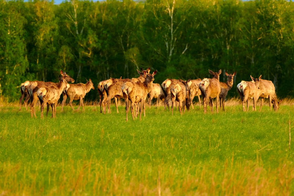 Сөзінің айна-қатесіз рас екеніне таңғы сағат 4-те далаға шыққанда көз жеткіздік. Әлі күн шықпаса да, айнала жап-жарық. Сәл төменірек етекте маралдар өріп жүр. Көзіміз жайнап, солай қарай бет алдық.