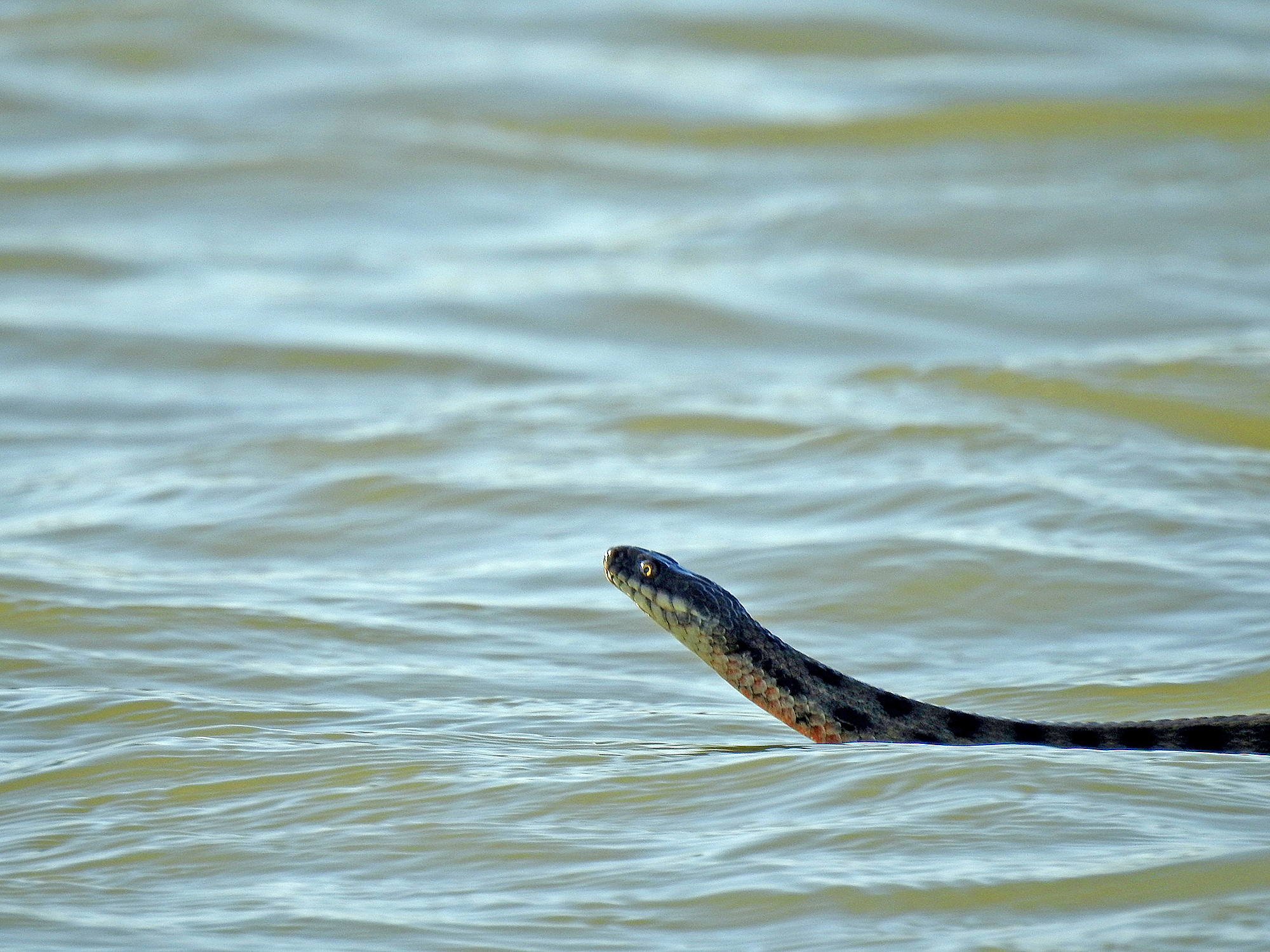 «Эксукурсияласымыз» су ішінен басын ара-тұра көтеріп, жан жағын барлай қарап қояды. Осы мезетте оның дөңгеленген көзі, дөңгелене келген көз қарашықтары анық көрінді. Бұл – жыланның уытсыз екеніне тағы бір дәлел.