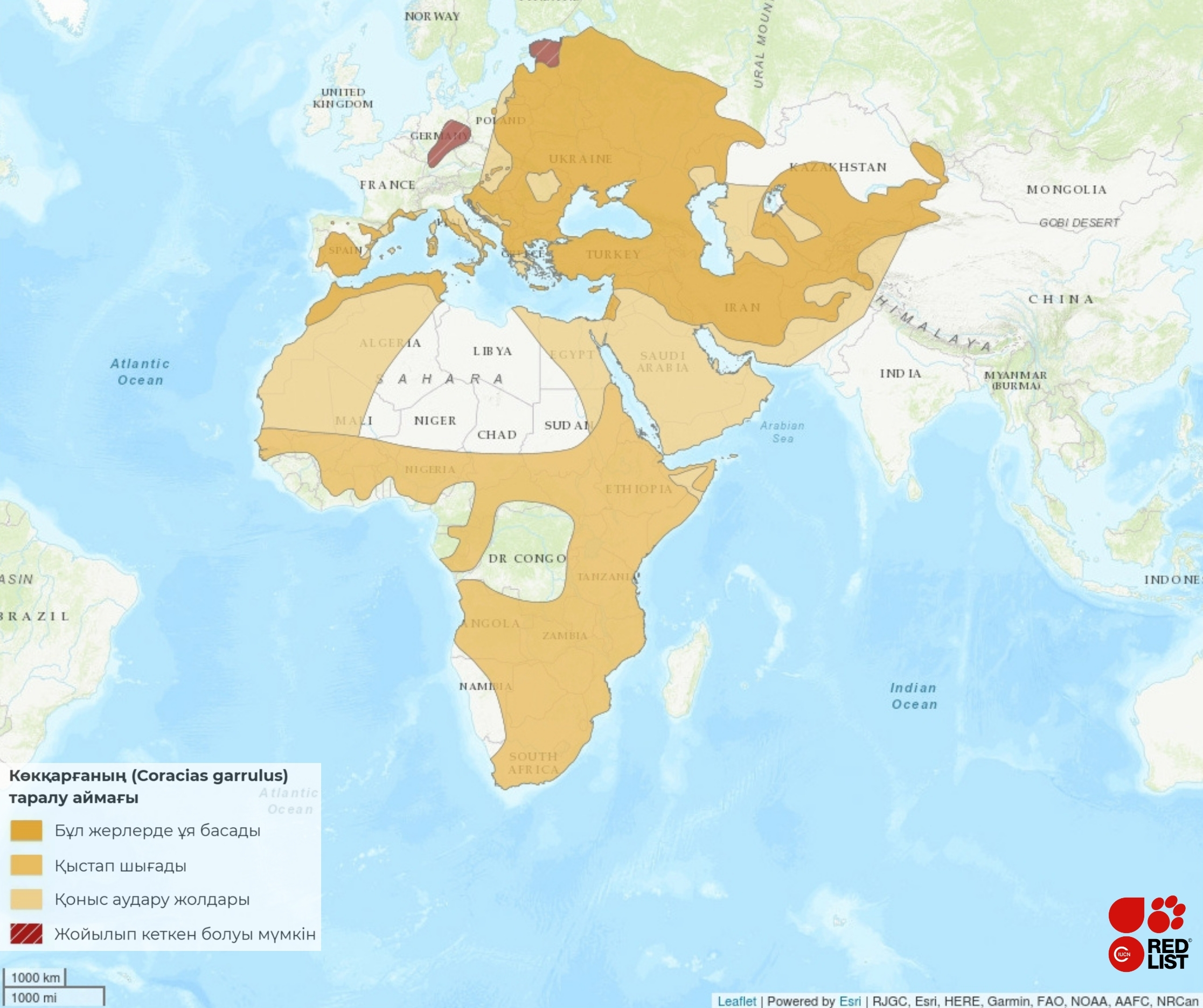 Көкқарғалар Еуропа мен Азияда ұя басып, Африкада қыстап шығады. Дереккөз: IUCN Red List
